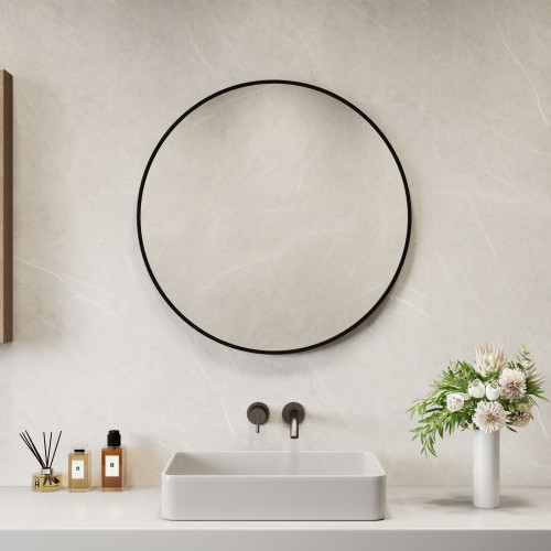 Tags: Neo Black or Copper Round Metal Frame Wall Mirror Float Glass HD Reflection Anti-Rust Moisture-Proof Wall Mounted Bathroom Bedroom Hallway Living Room Vanity 60cm