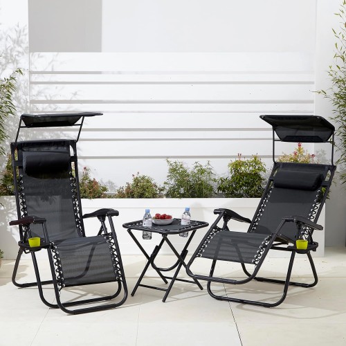 • Neo 3pc Folding Portable Zero Gravity Chairs Sun Lounger Table Set Cup Holders Sun Visor Reclining Garden Patio Outdoor Camping